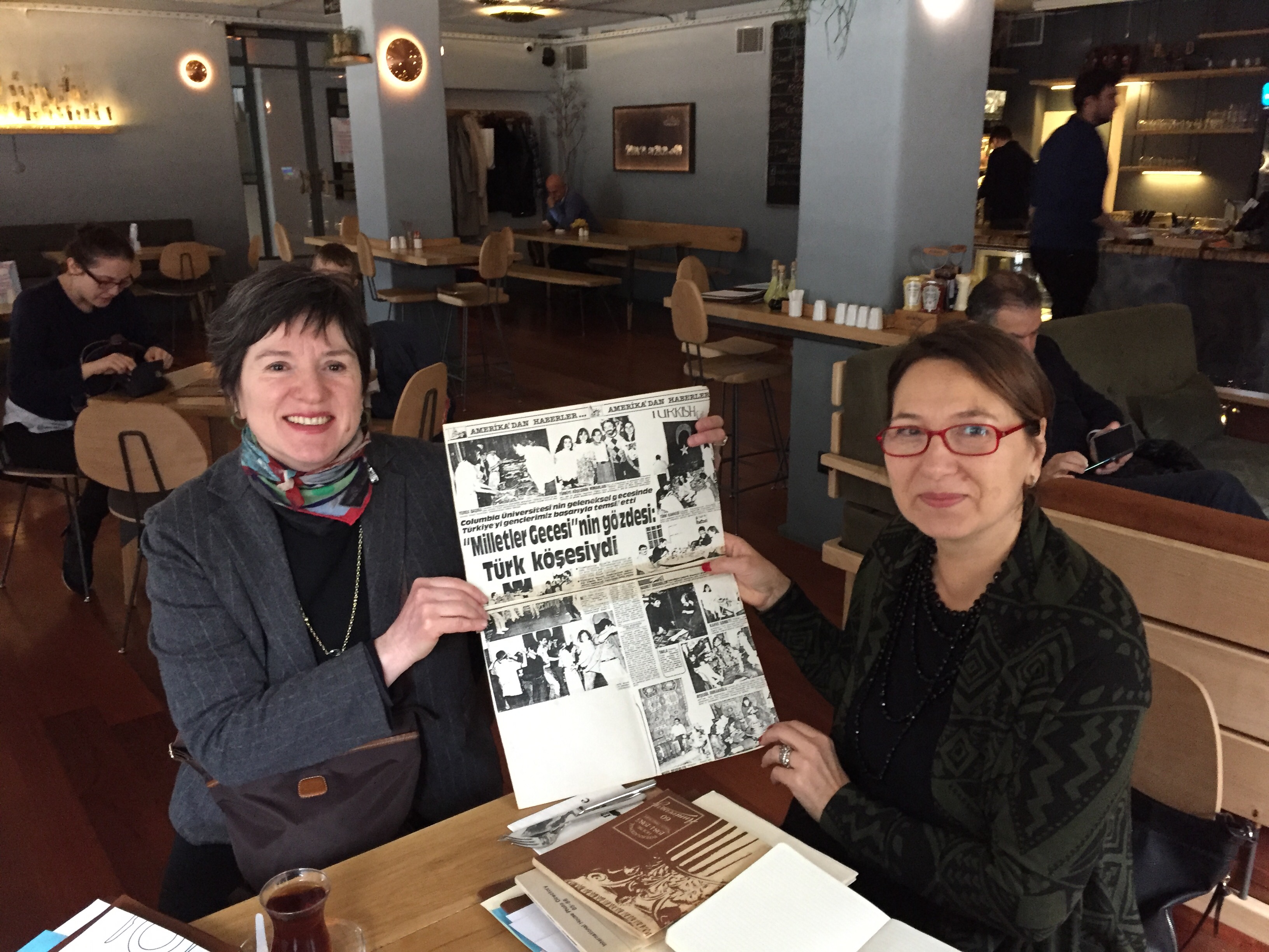 We had a very lovely meeting with a lively crowd. Nilgun Okay and her sister Nesrin, both residents, came with Nilgun’s daughter. They also bought their I-House memorabilia with them. Including a newspaper article from the Turkish press about their performance at I-House at Fall Fiesta. They told me that at least 5 other cousins or relatives of theirs have also lived at the House!