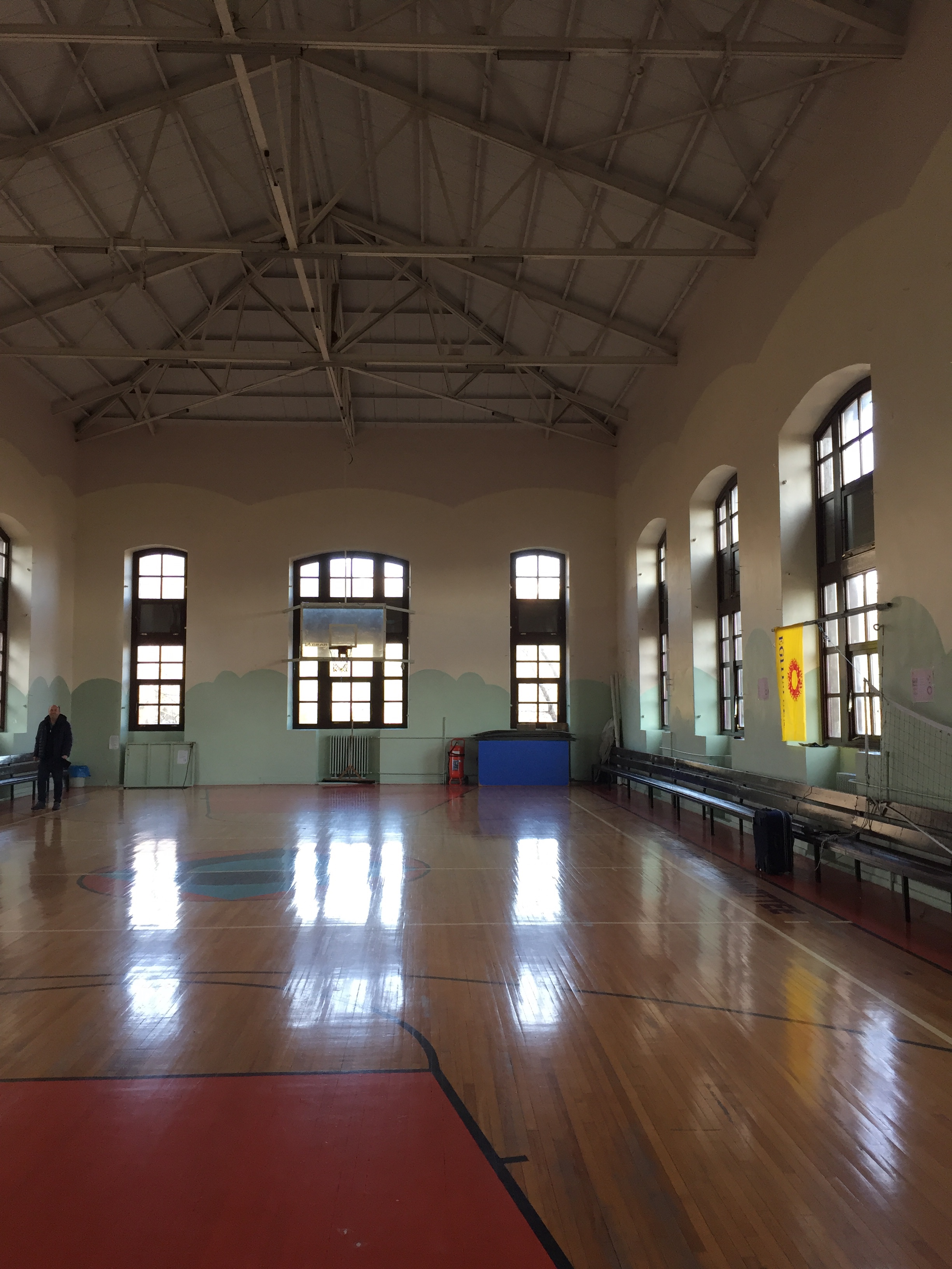 We visited the Dodge Gymnasium which is constructed of the blue limestone quarried on the campus. It was financed by Cleveland who was Chairman of the Board of Trustees from 1909 until 1926, and his father, William E. Dodge. For many years it was the first modern gymnasium in Europe and had the only indoors running track in Turkey (sadly no longer in existence). The first basketball game in Turkey was played here in 1908. Today the original floor is still in place and the building has been lovingly maintained by its very charismatic caretaker, who was keen to show us around.