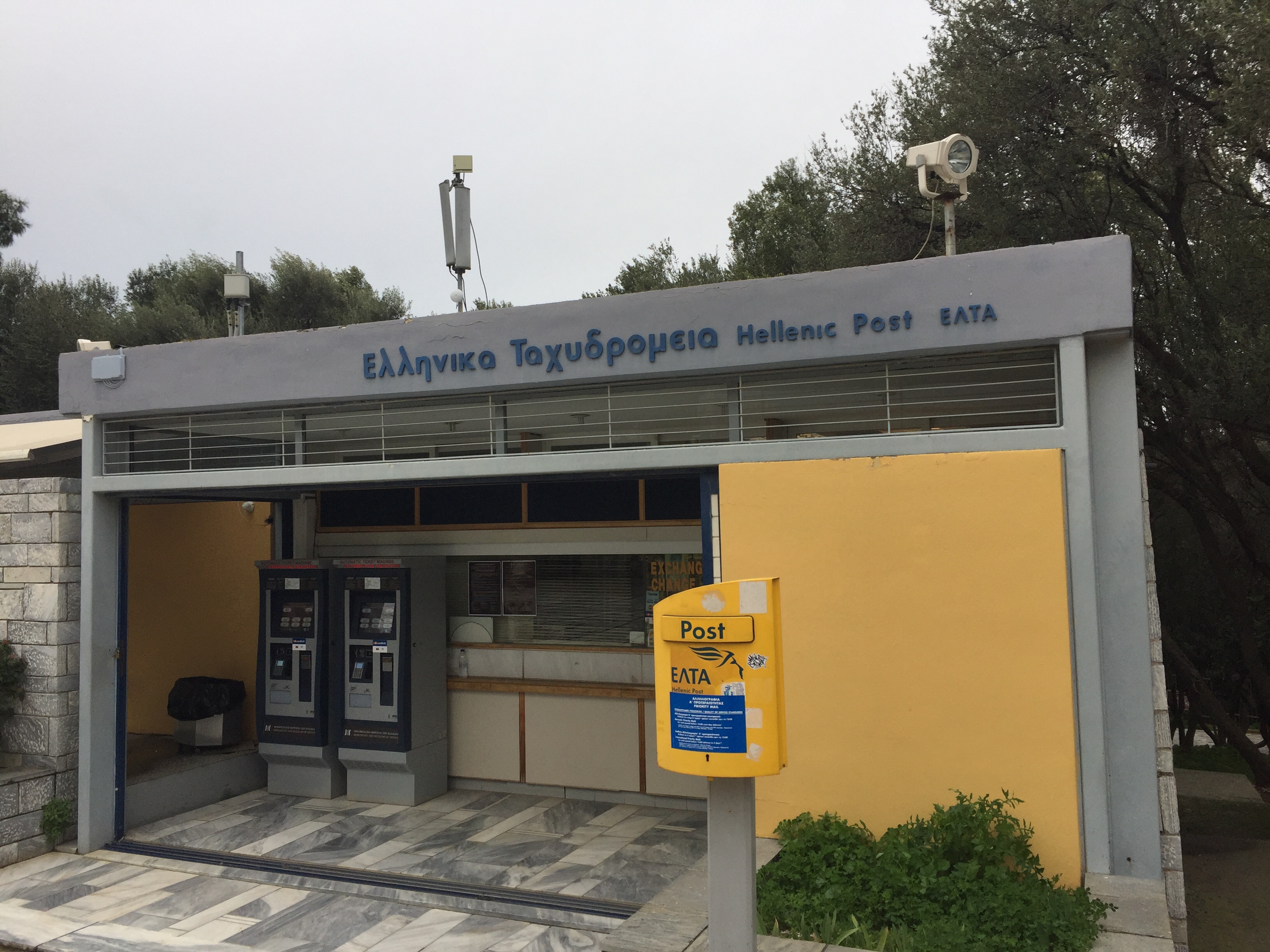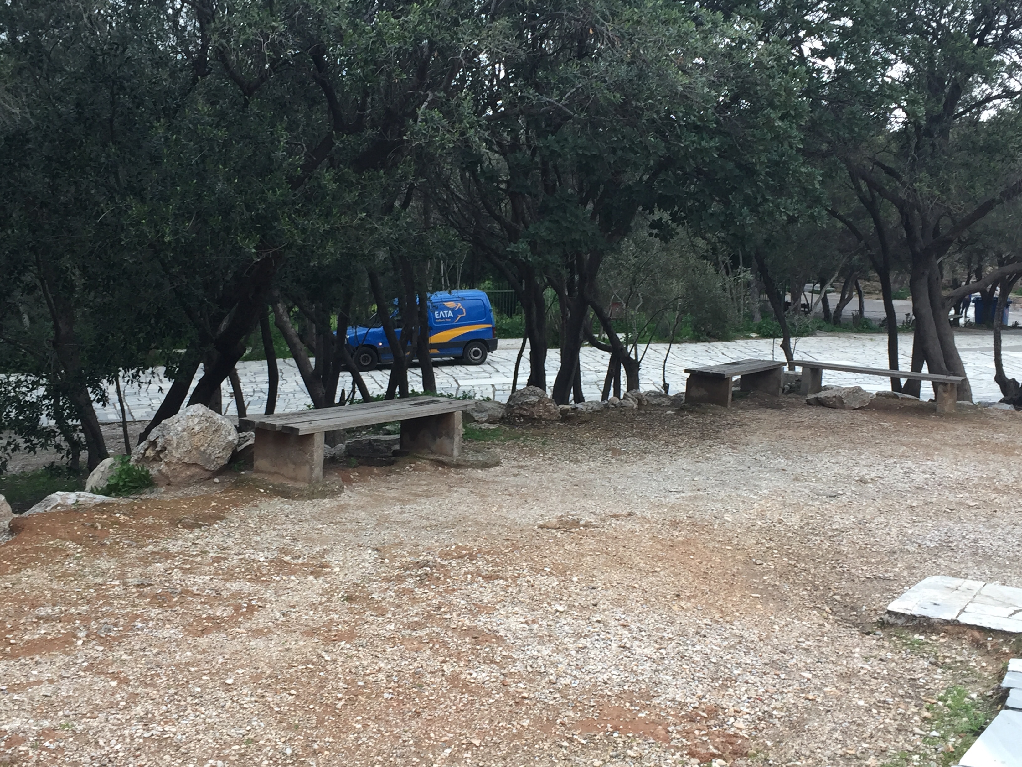 Greece scored highly on the postcard quest. Postcards are abundant at every tourist spot and stall. I secured 4 for €1 and there is a handy post office opposite the entrance to the Acropolis. The lady behind the counter was a bit tardy in opening up and as I waited the post man appeared to collect the cards from the box outside, but he waited for me to buy my stamps and took the cards, speeding off behind the trees in his blue van…