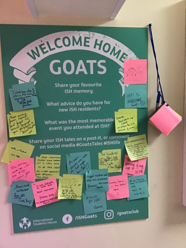 ISH was started by Mary Trevelyan, and opened in 1965, but a bit like Harry before she went into building a House she started by forming a club, the GOATs club that offered 100 international students a place to socialise and get support whilst they studied. Alumni of ISH are still called GOATs. https://ish.org.uk/goatsmembership/