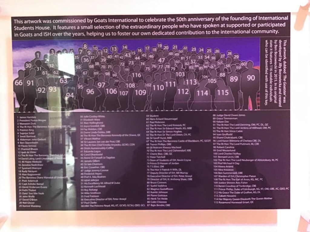 I was meeting Jilly Borowiecka who has worked at ISH for many years and is well known amongst the ISH alumni I have met. We were also joined by a current resident, Cynthia, who works part time with the alumni team. Cynthia is one of the nearly 90 scholars this year who are funded to live at the House to enable them to study at one of the universities or institutions in London. This scholarship program is something ISH is hugely proud of and are planning to expand it further next year.